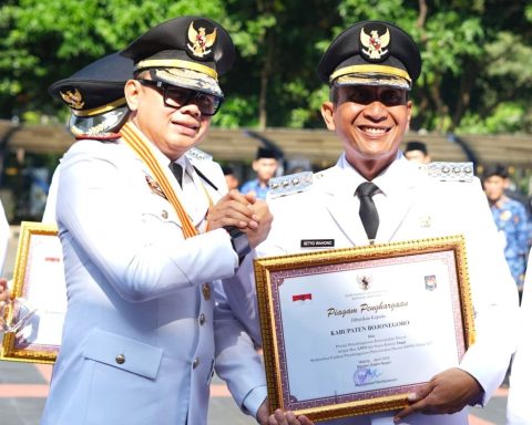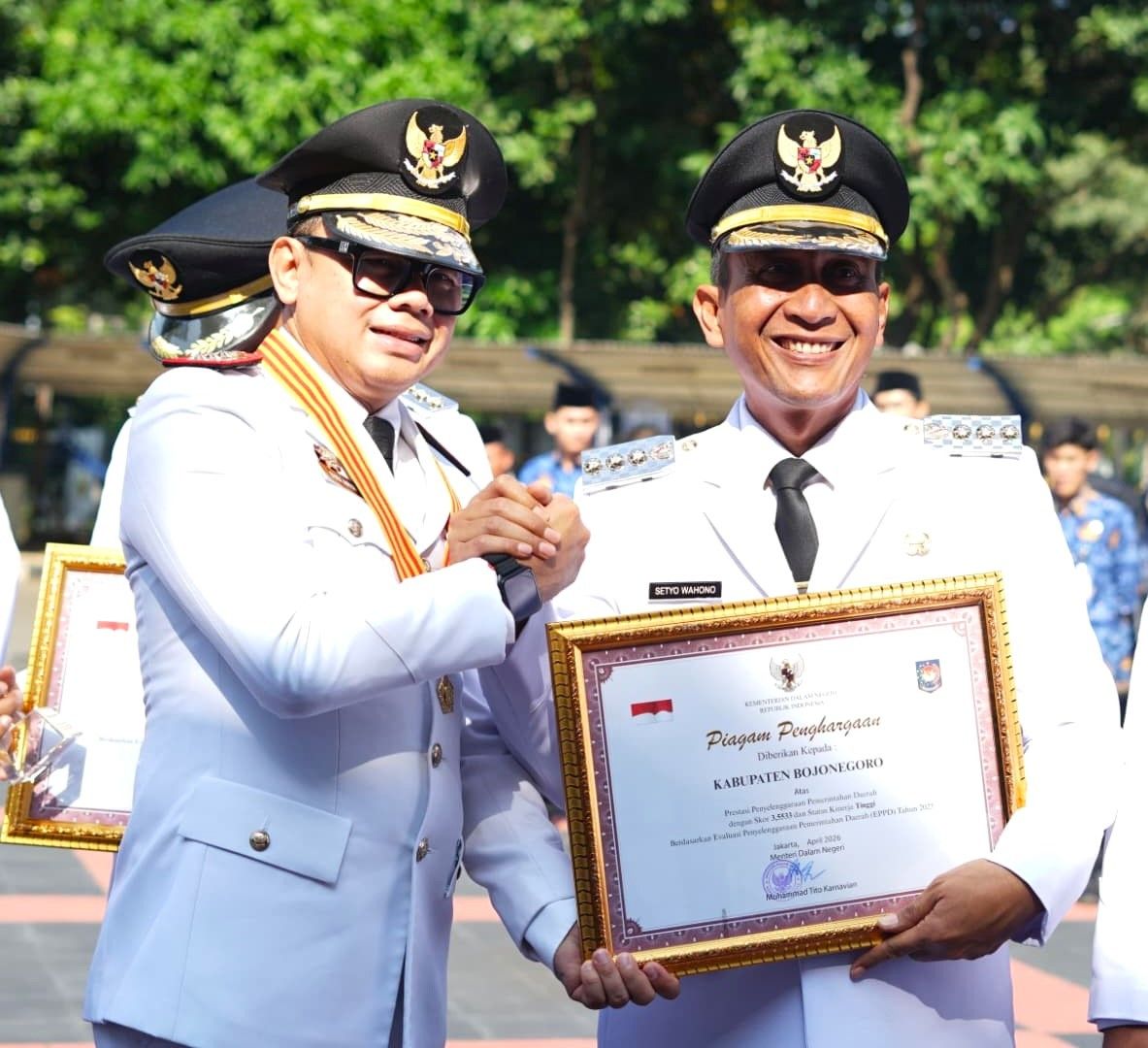 BERITA 14/04/2026 Dua BUMD Bojonegoro Raih Lima Prestasi, Satu untuk Bupati Wahono KINERJA apik BPR Bank Daerah Bojonegoro dan Perumda Air Minum Tirta Buana berbuah prestasi. Termasuk, untuk Bupati Wahono.