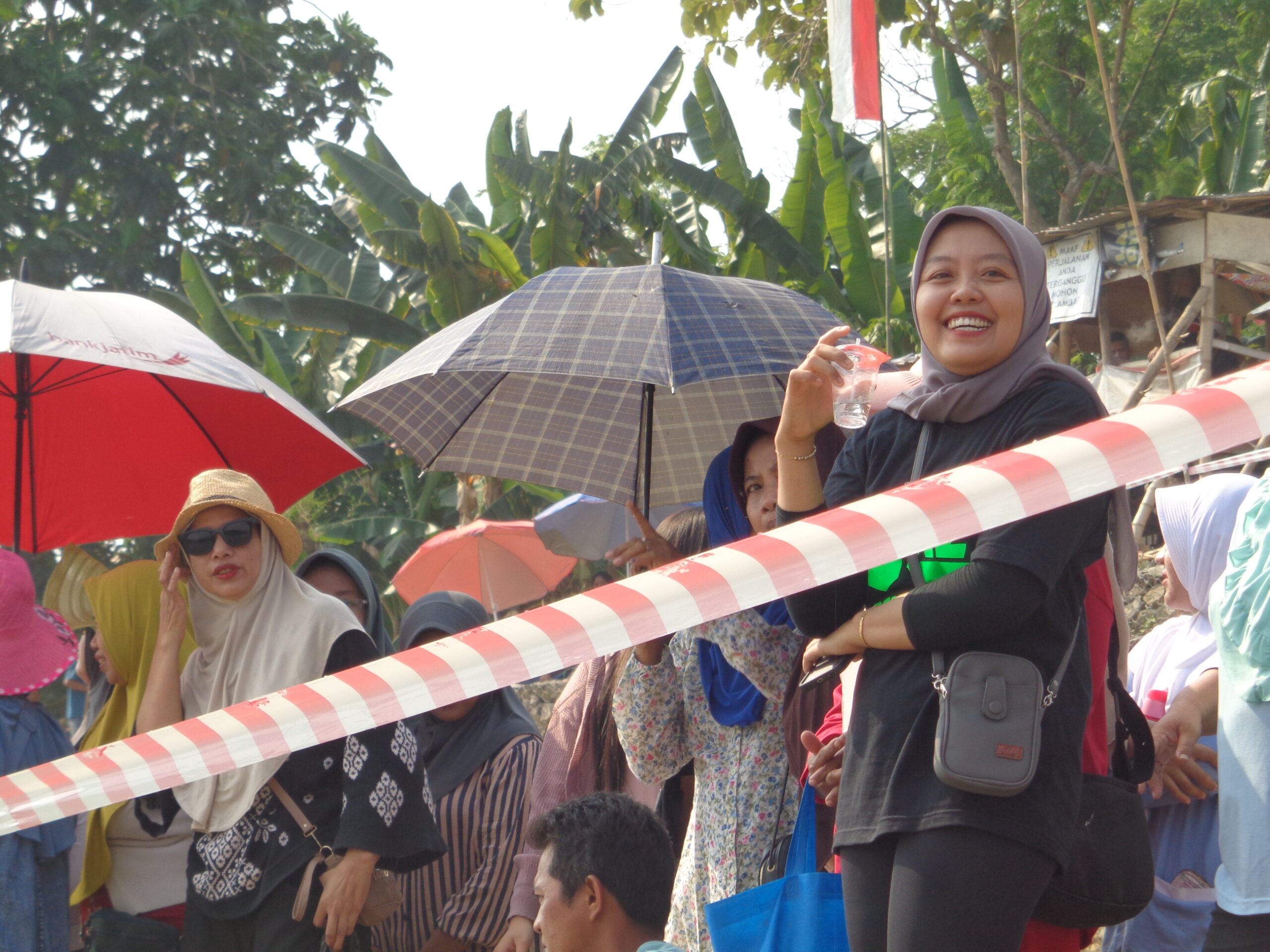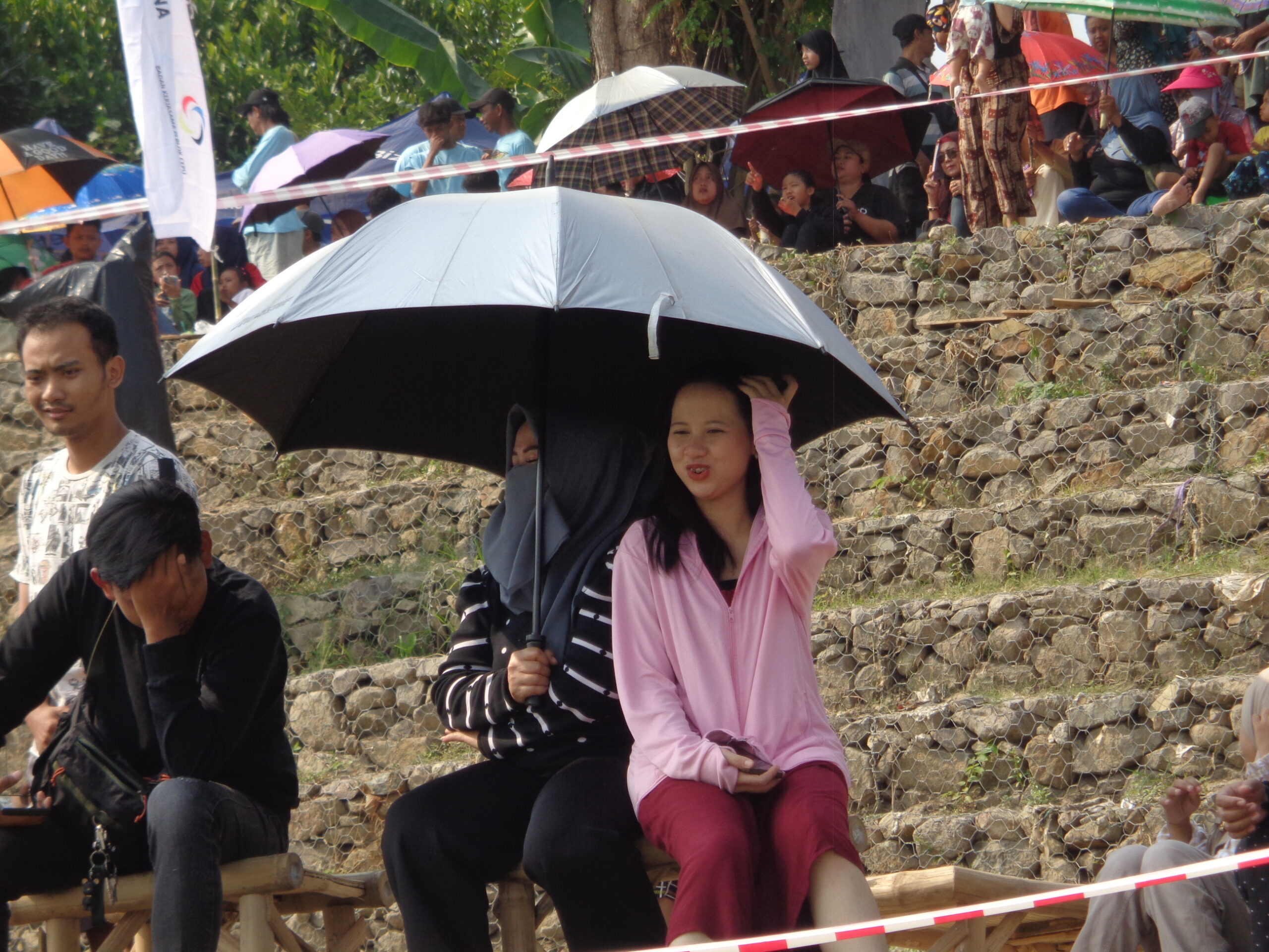 Mereka semua melihat rangkaian acara Jazz Bengawan. Cuaca terik tidak menyurutkan niat. Mereka tetap semangat. Berkacamata hitam. Berlindung di bawah teduh payung, topi, dan peneduh lainnya. Demi menyaksikan rangkaian acara Jazz Bengawan yang menawan.