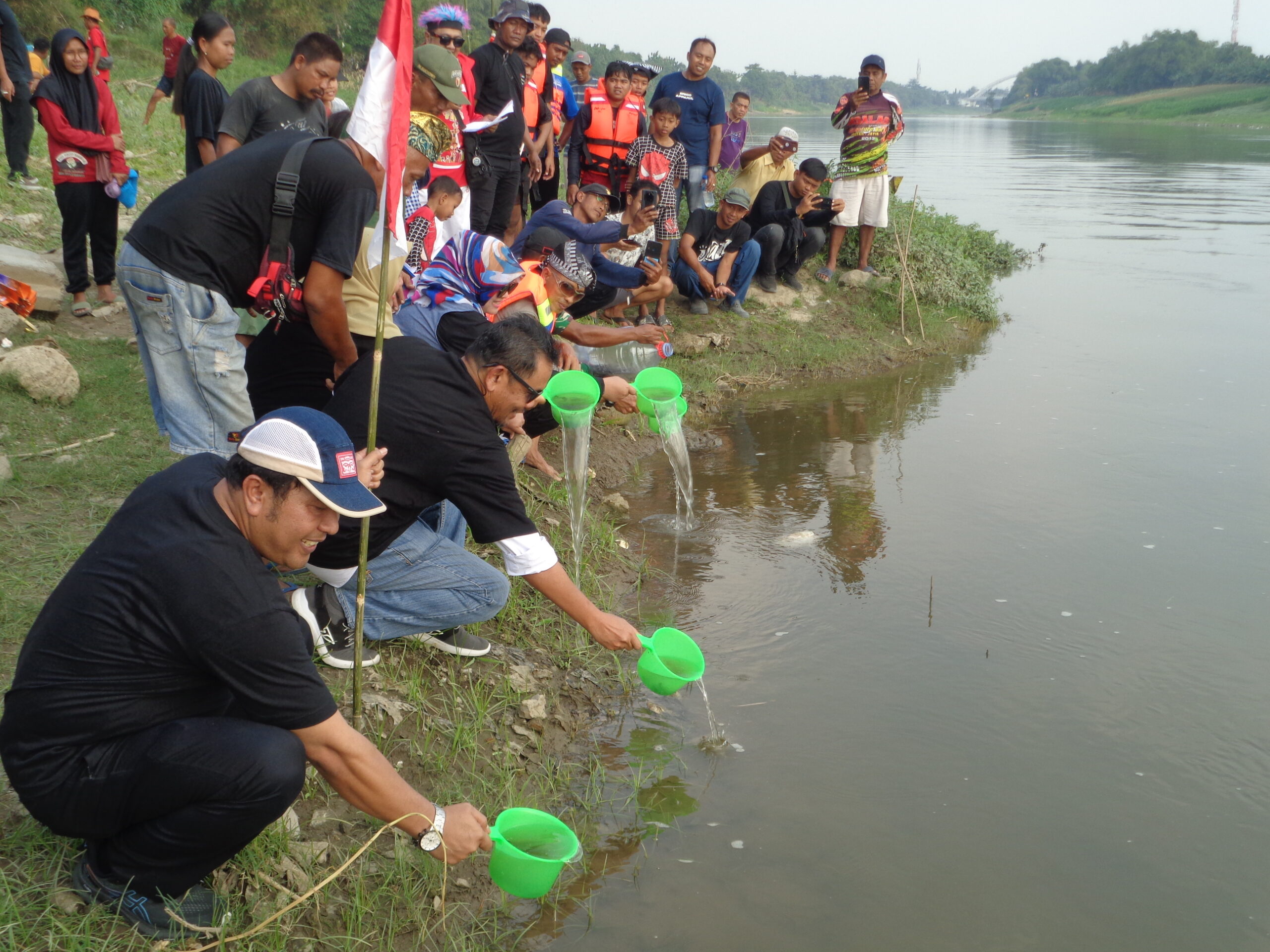 BOJONEGORORAYA – Suasana kelewat meriah berlangsung di sempadan Bengawan Ledok, Jumat (15/8/2025) siang—sore. Tua, muda, belia, hingga bayi-bayi, memadati sempadan Bengawan turut Kelurahan Ledok Kulon, perkotaan Bojonegoro itu.