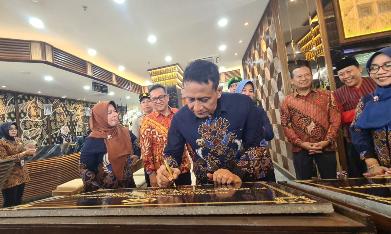 TANDATANGANI PRASASTI: Bupati Wahono saat meresmikan gedung baru BPR Bank Daerah Bojonegoro, Jumat (24/10/2025) pagi. (Foto: Istimewa)