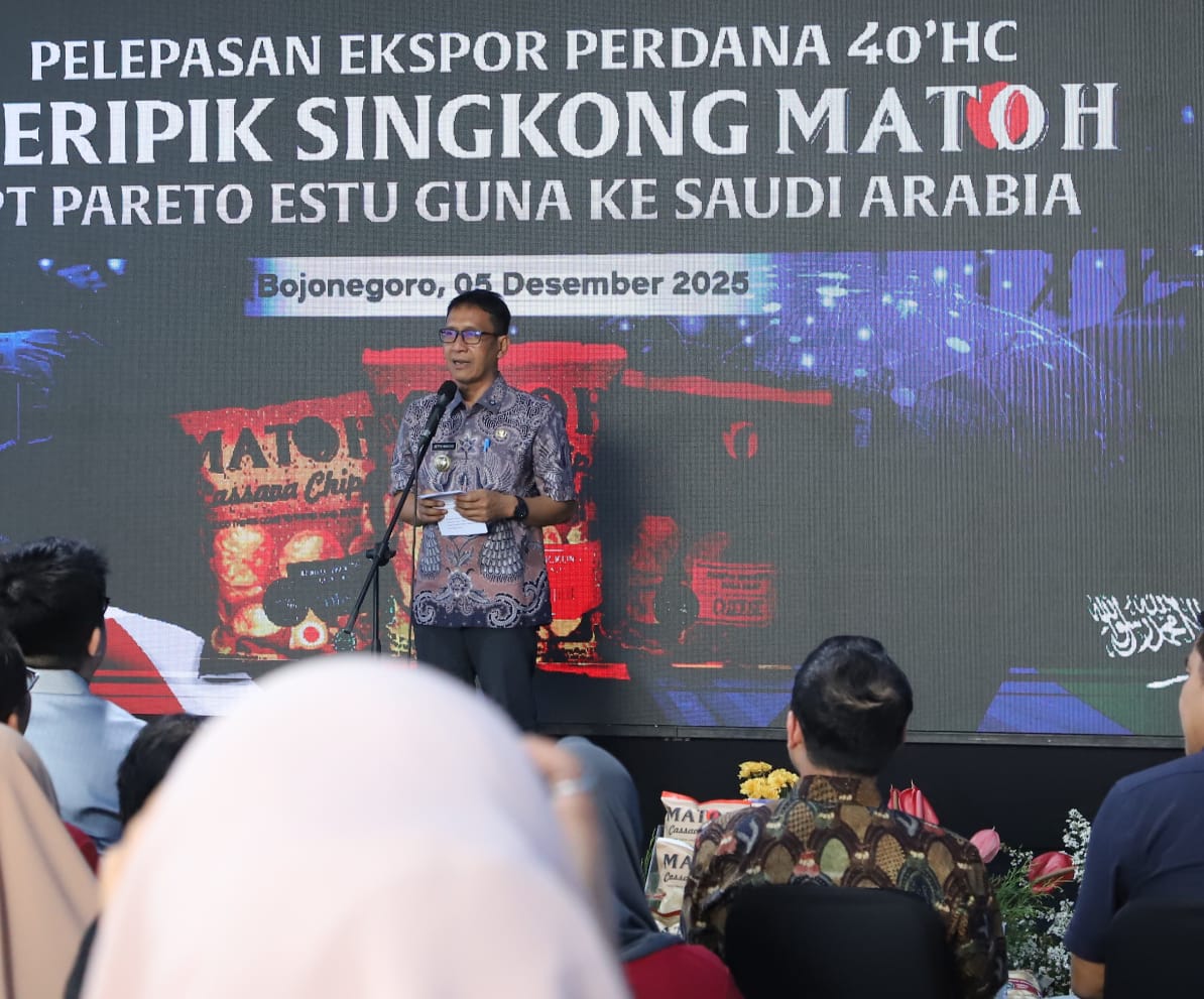 BOJONEGORORAYA — Keripik singkong Bojonegoro mendunia. PT Pareto Estu Guna mengekspor satu kontainer keripik singkong merek Matoh itu ke Arab Saudi, Jumat (5/12/2025) pagi.