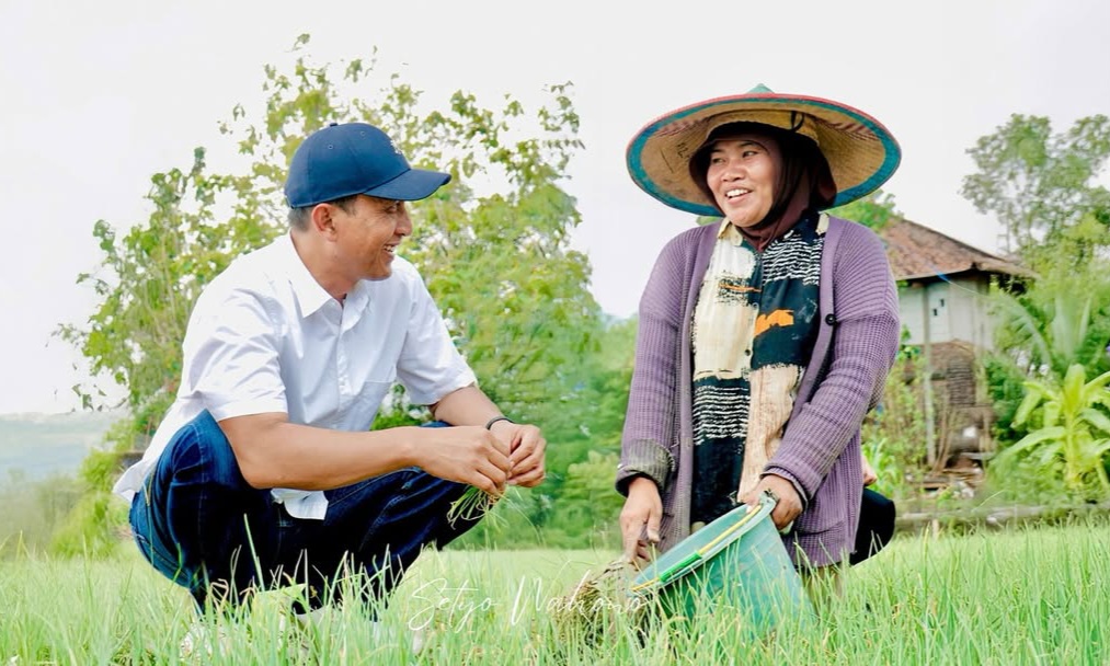 AKRAB: Setyo Wahono saat bercakap dengan salah satu petani di Kecamatan Sekar, ketika Medhayoh di sana, Rabu (13/8/2025). (Foto: Istimewa)