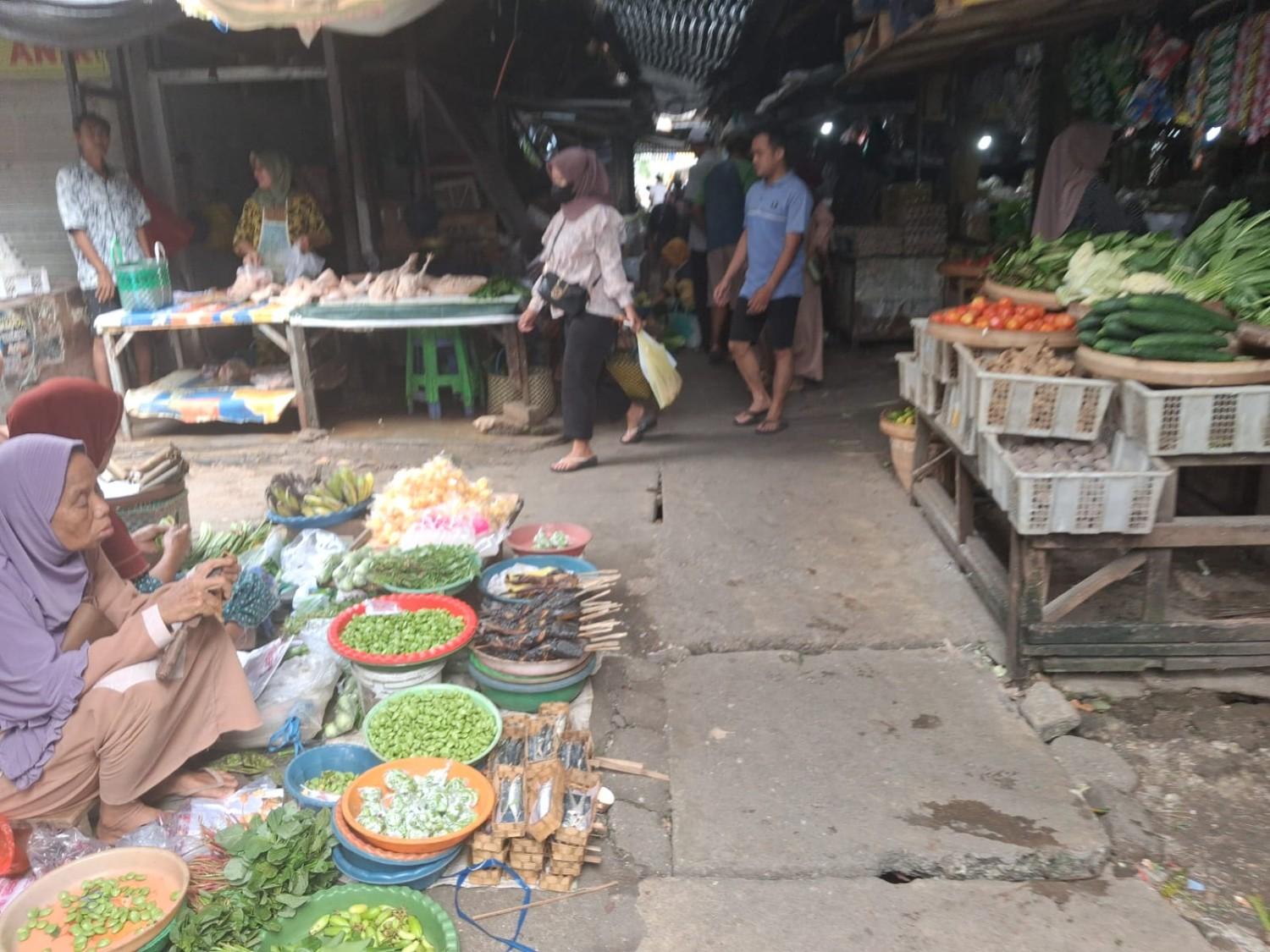 Kepala Dinas Perdagangan, Koperasi, dan Usaha Mikro Retno Wulandari juga hadir. Menyapa pedagang.