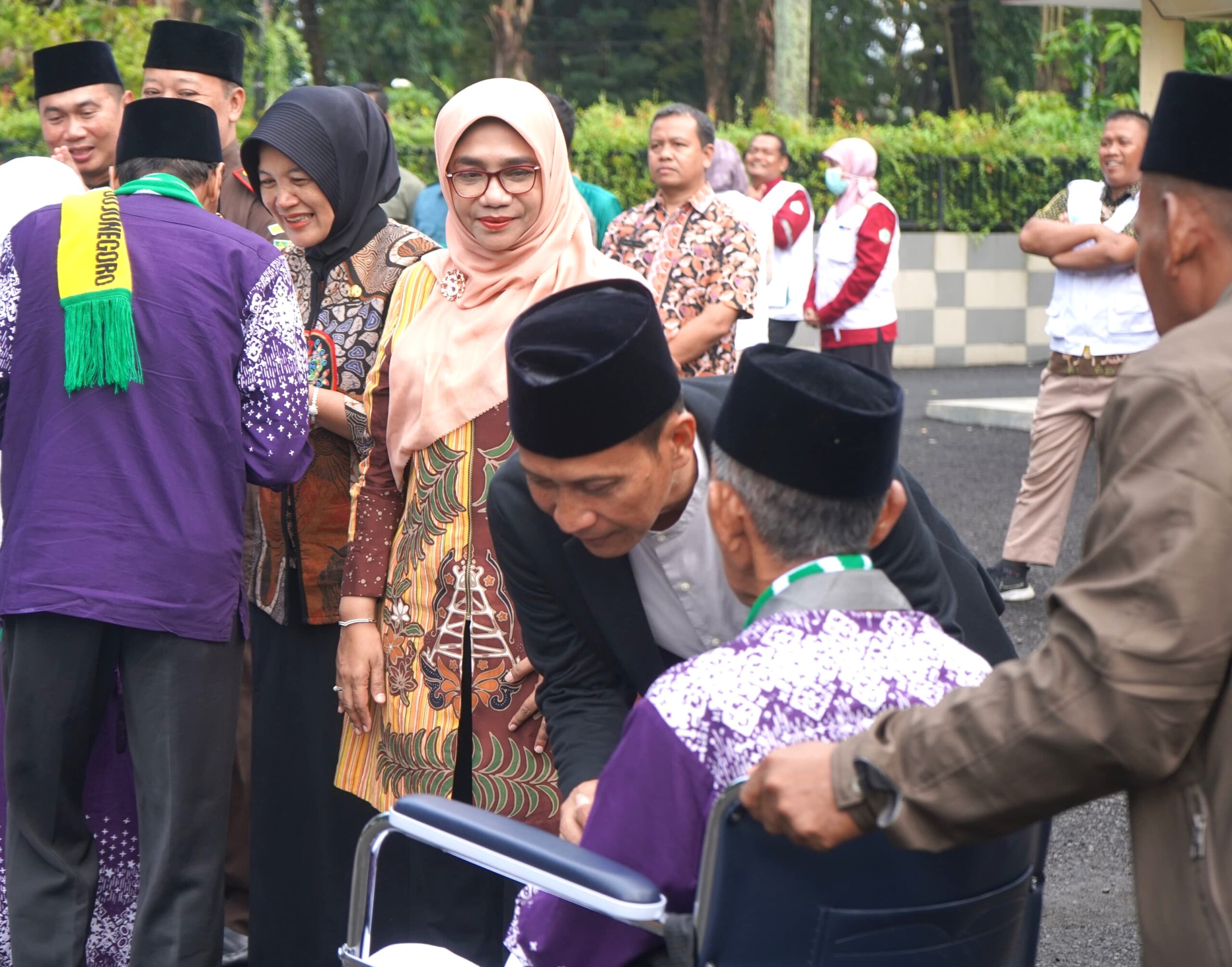 Bersama Mas Bupati Setyo Wahono dan Ibu Cantika Wahono, saya lalu menyapa satu per satu jemaah haji. Terutama jemaah haji usia lanjut (lansia). Jemaah haji memakai kursi roda. Juga, jemaah haji disabilitas.
