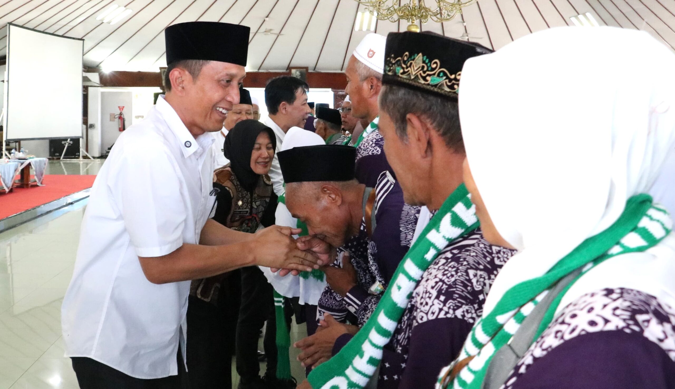Mas Bupati Bojonegoro Setyo Wahono saat memberi sambutan, terus memberi pesan, saling menyemangati, dan berdoa agar jemaah haji menjalankan ibadah dengan lancar dan mabrur.