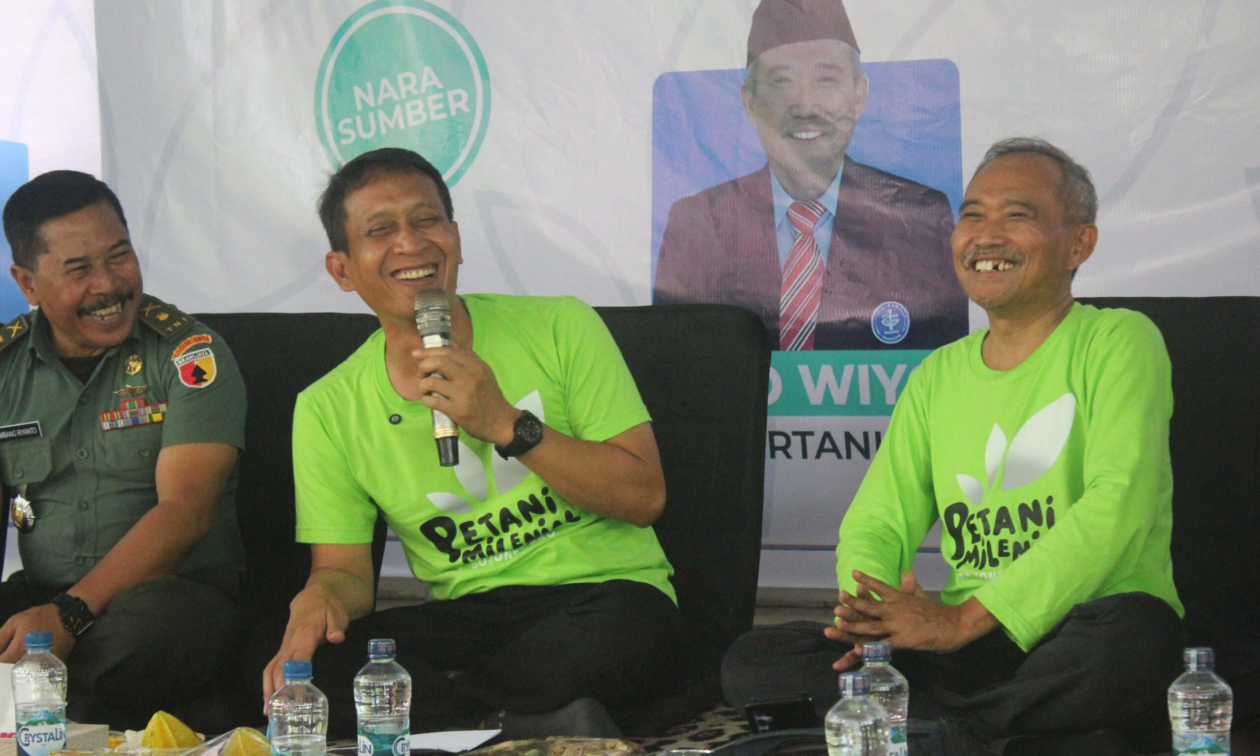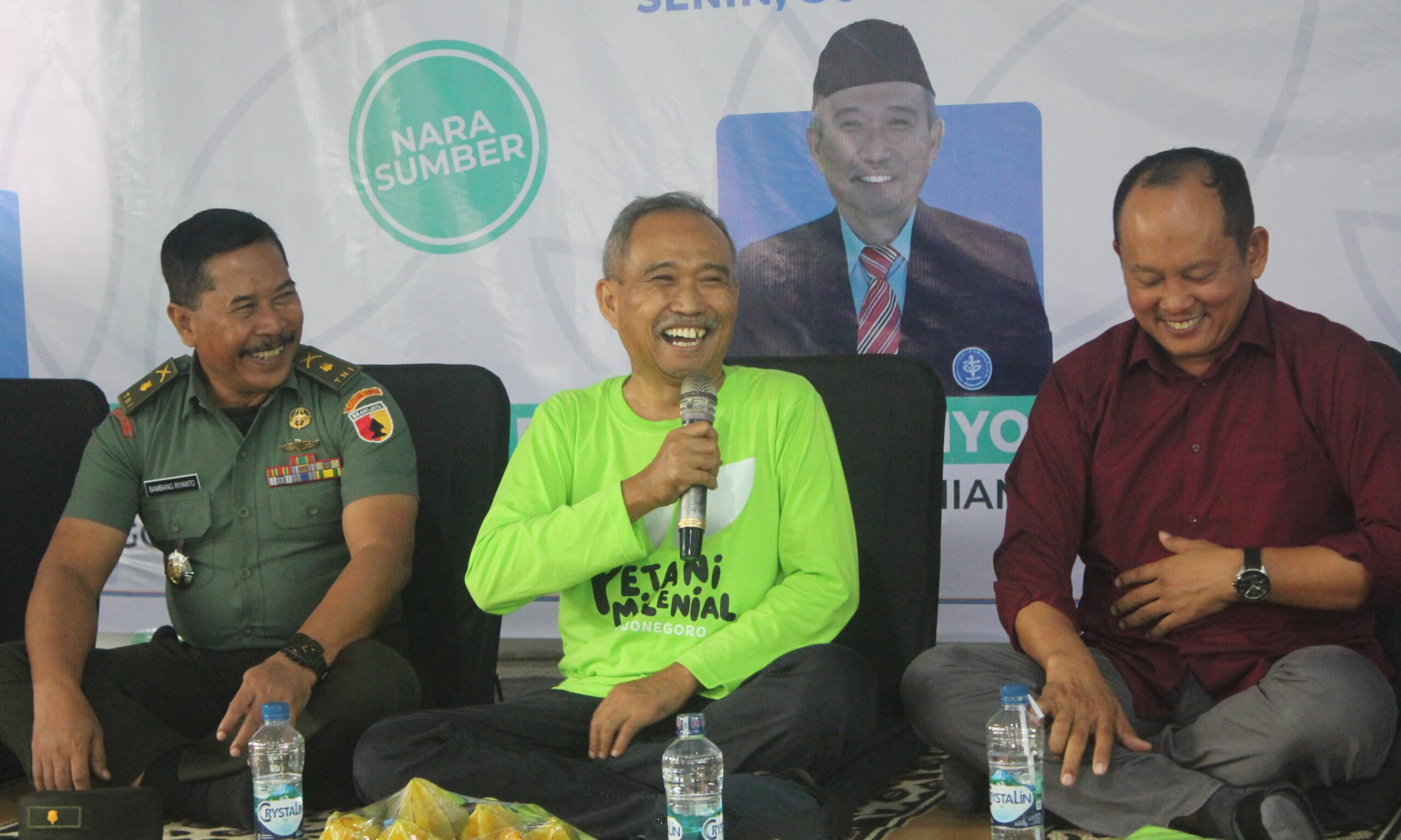 Adapun, pemateri Jagongan Petani Milenial part 2 adalah Dekan Institut Pertanian Bogor (IPB) Suryo Wiyono, Owner Laskar Buah Muhadi, dan Plt. Kepala Dinas Ketahanan Pangan dan Pertanian (DKPP) Bojonegoro Zaenal Fanani.