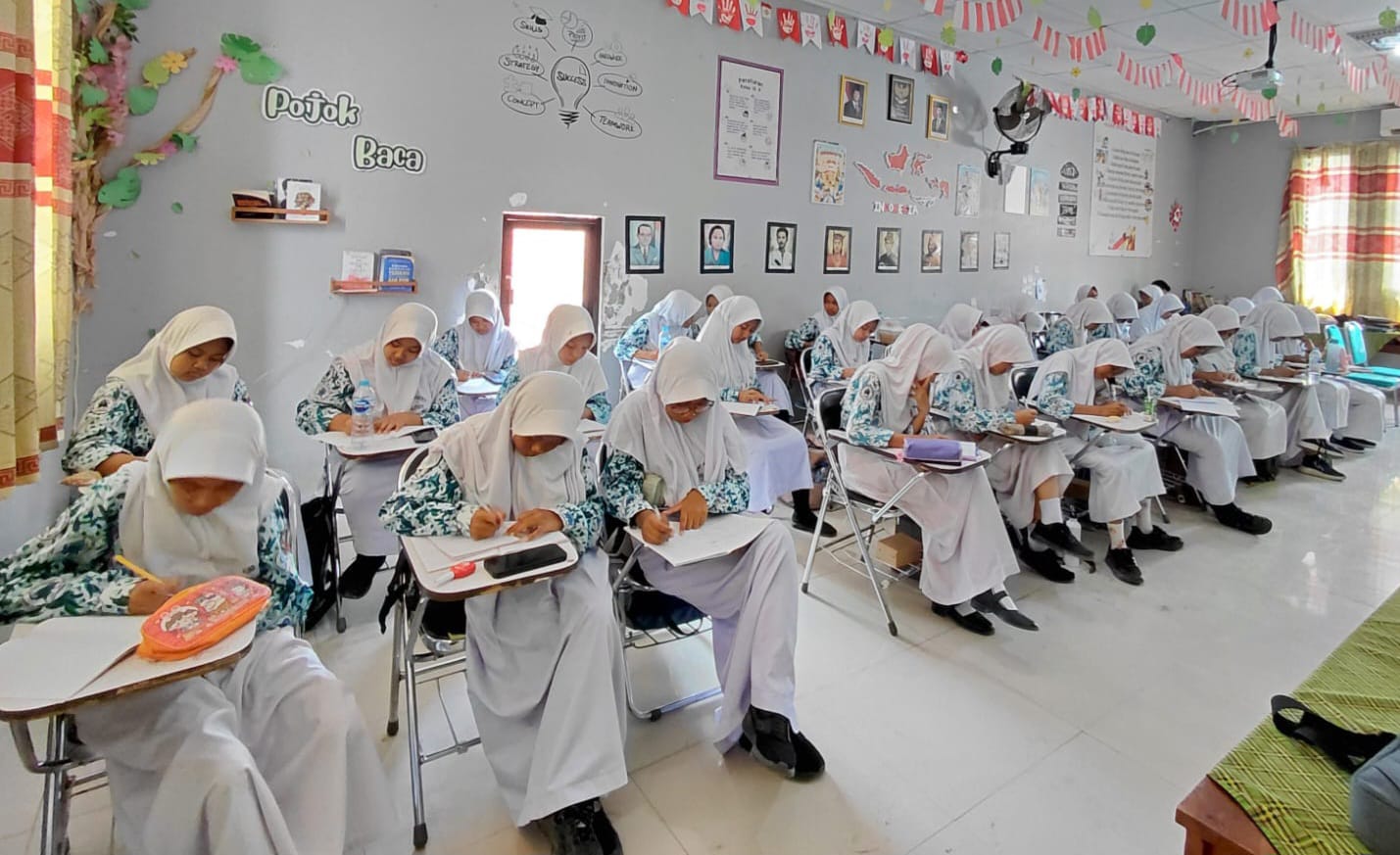 Pelatihan jurnalistik dimaksud, diselenggarakan di ruang kelas 9A. Bertajuk “Menjadi Jurnalis Muda yang Kreatif dan Inovatif”.