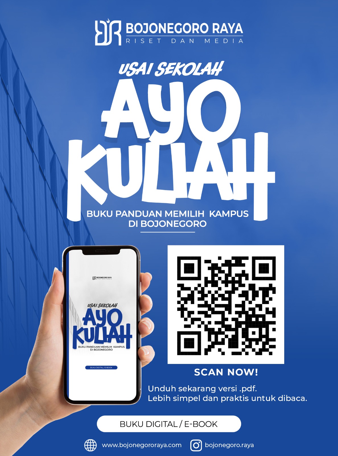 Selain itu, kata Manager Bisnis Bojonegoro Raya ini, buku Usai Sekolah Ayo Kuliah bisa diakses gratis. Tanpa biaya. Tinggal download melalui link ini. Atau scan barcode di bawah ini.