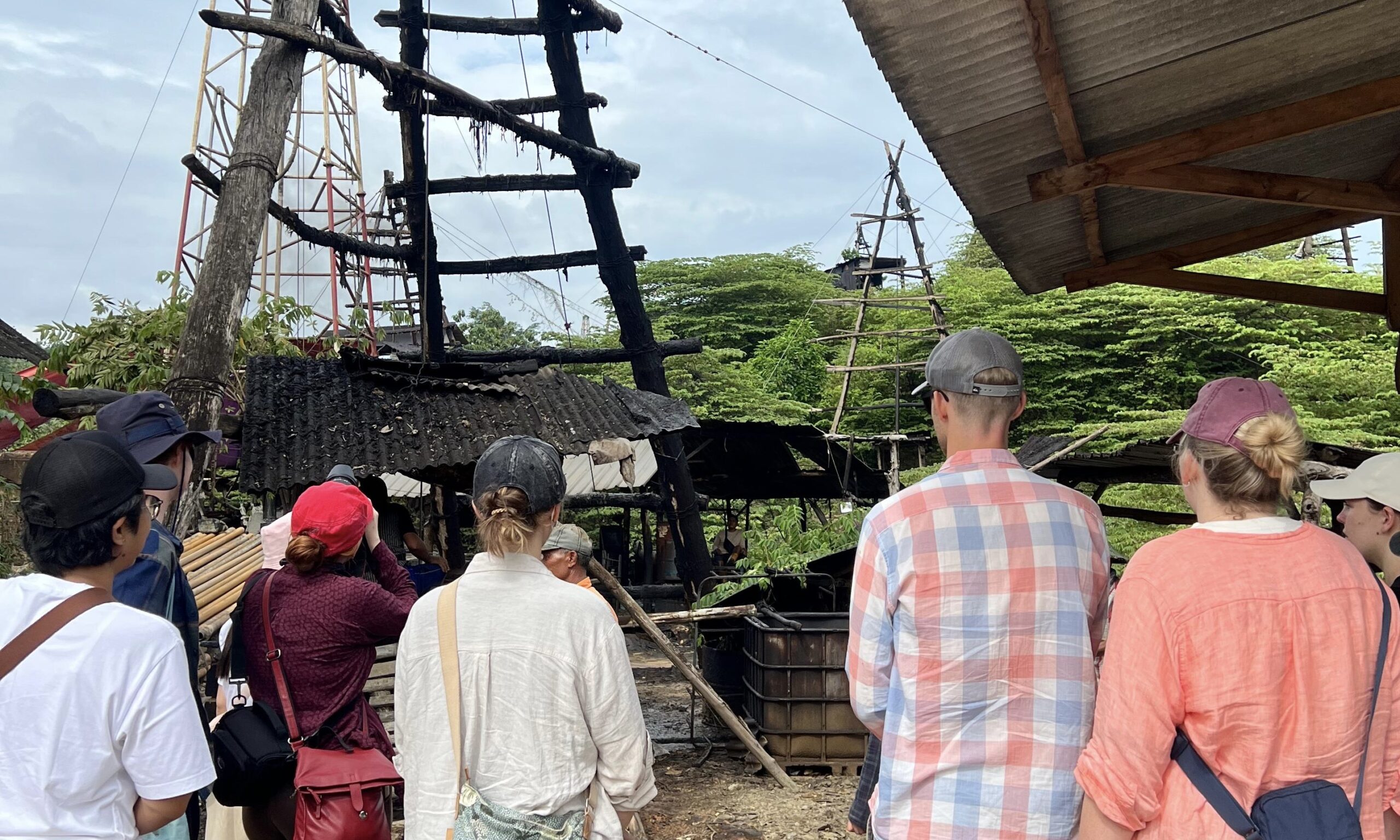 Mereka juga diajak menyaksikan dari dekat, bagaimana masyarakat menambang minyak bumi dari sumur-sumur tua, secara tradisional.