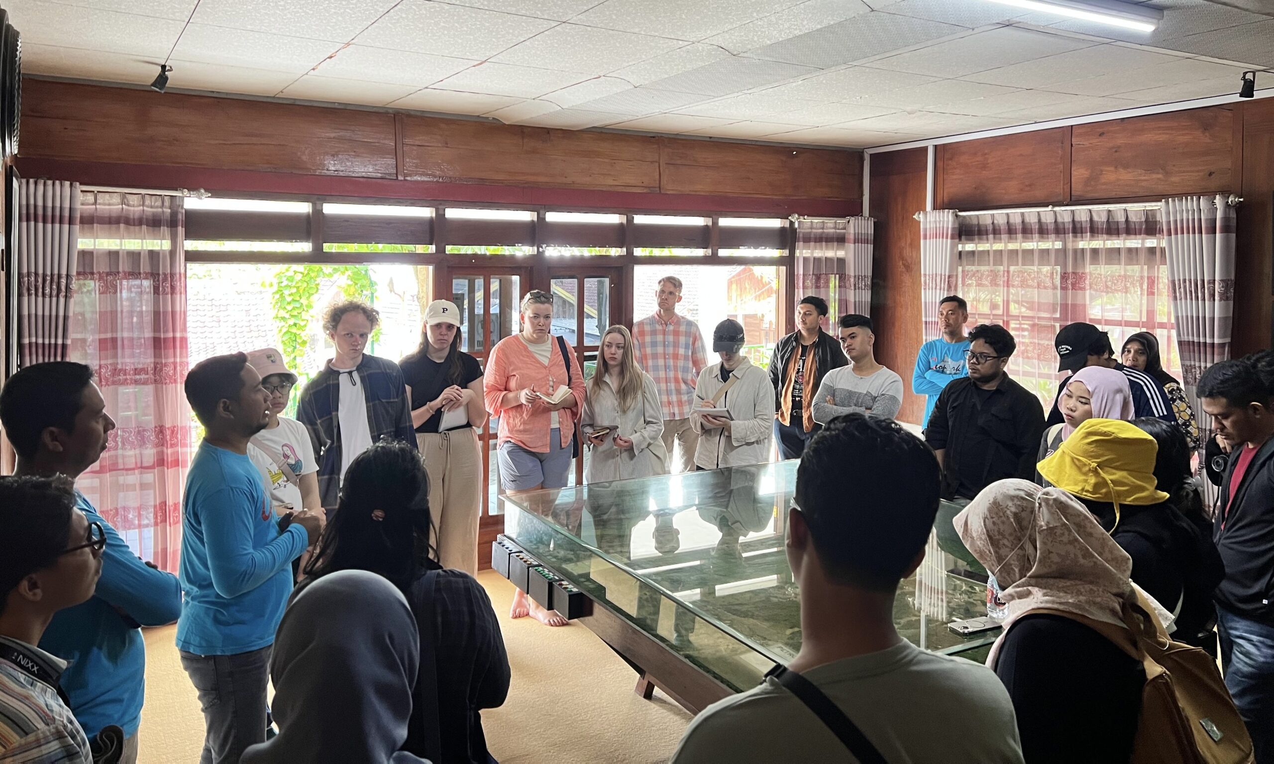 Para mahasiswa dari Negeri Matahari Tengah Malam itu diajak melihat berbagai warisan geologi, sejarah, serta budaya di Teksas Wonocolo.
