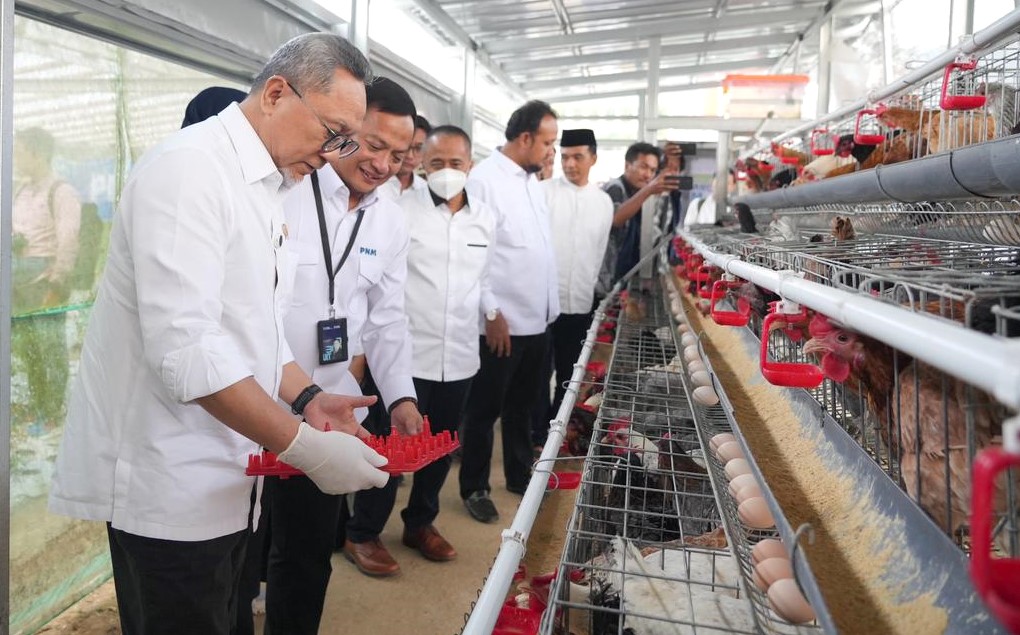 BERKELANJUTAN: Menko Zulkifli Hasan ikut memanen ayam petelur di Rumah Pangan PNM. Program ini berkesinambungan, terutama pangan. Terlebih bisa diserap untuk MBG.