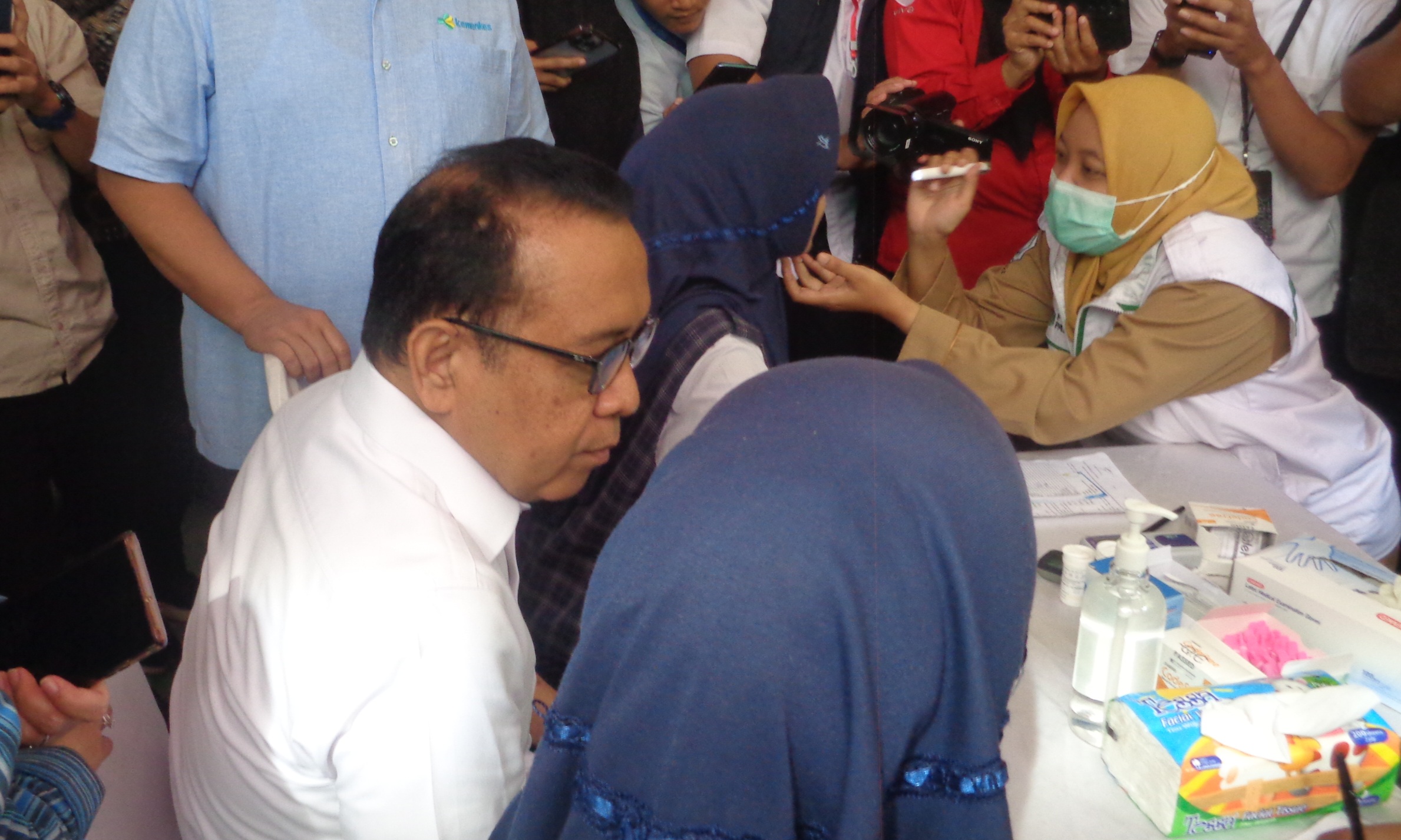 Dia meninjau kick off program Cek Kesehatan Gratis (CKG) untuk pelajar se-Indonesia di SMPN 1 Padangan, Bojonegoro, Senin (4/8/2025) pagi.