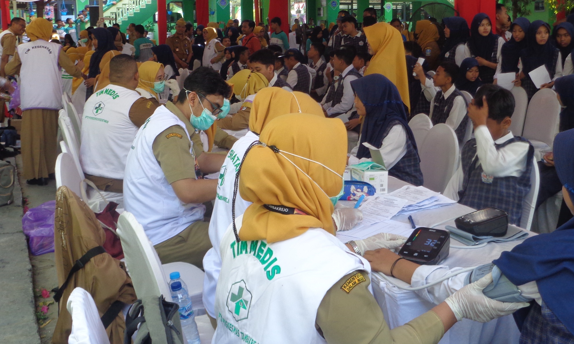 Dalam momen itu, total ada 958 pelajar SMPN 1 Padangan menjalani CKG. Mereka diperiksa 80 tenaga kesehatan dari 10 puskesmas wilayah Bojonegoro barat.