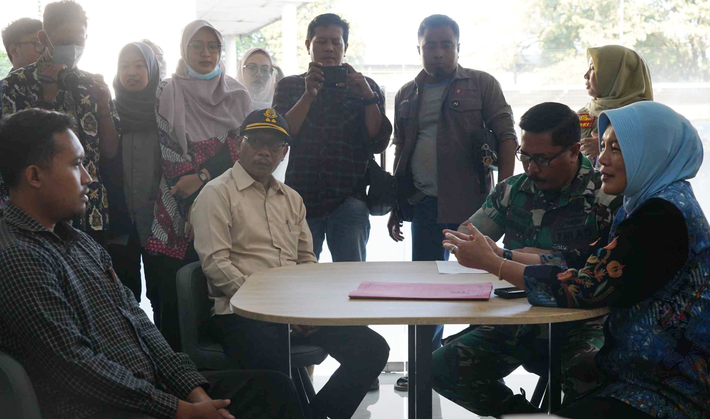Wabup Nurul Azizah, perwakilan kejari, kodim, saat berdialog. Sidak memastikan pabrik ditutup sementara.