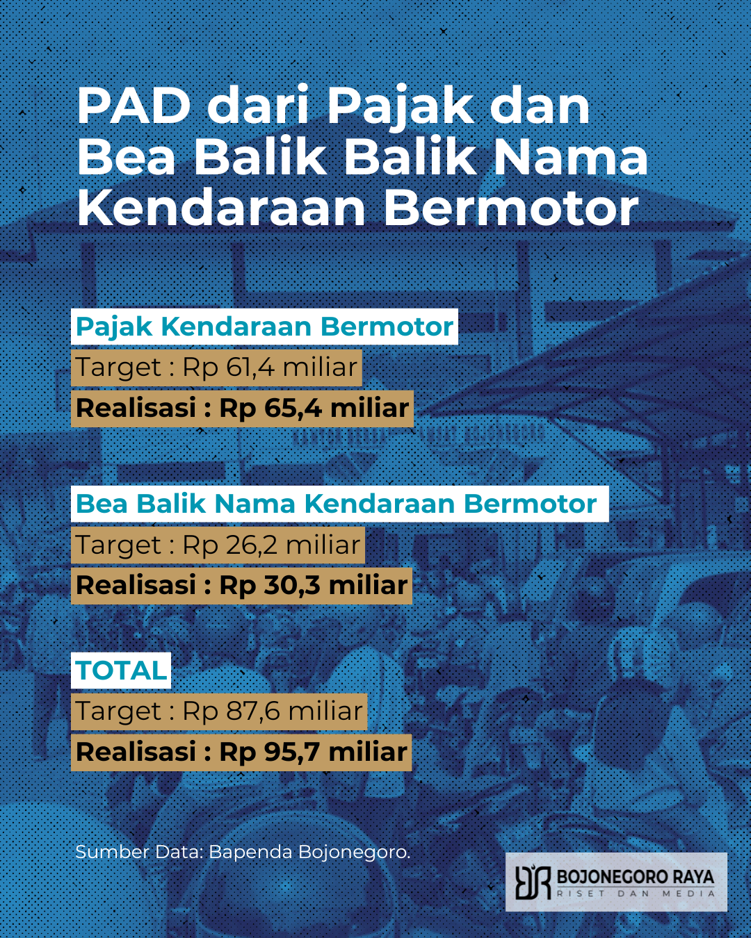 Pada 2024 ke bawah, Pemkab Bojonegoro tidak mendapatkan PAD dari PKB dan BBNKB sepeser pun. Seluruhnya masuk Pemprov Jawa Timur (Jatim).