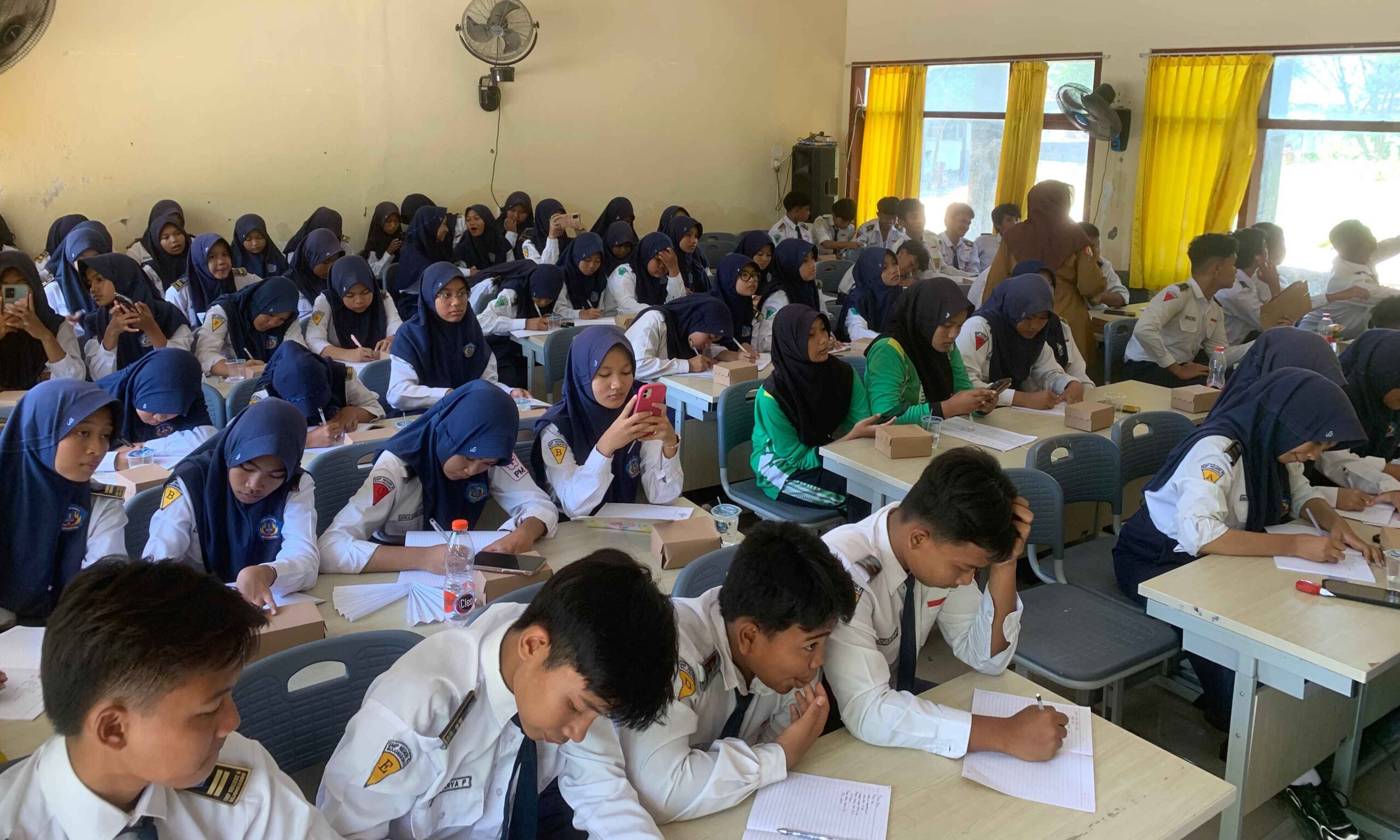 BOJONEGORORORAYA — Aula SMPN 6 Bojongoro begitu riuh, Selasa (23/9/2025) siang. Diisi sekitar 100 pelajar sekolah setempat.