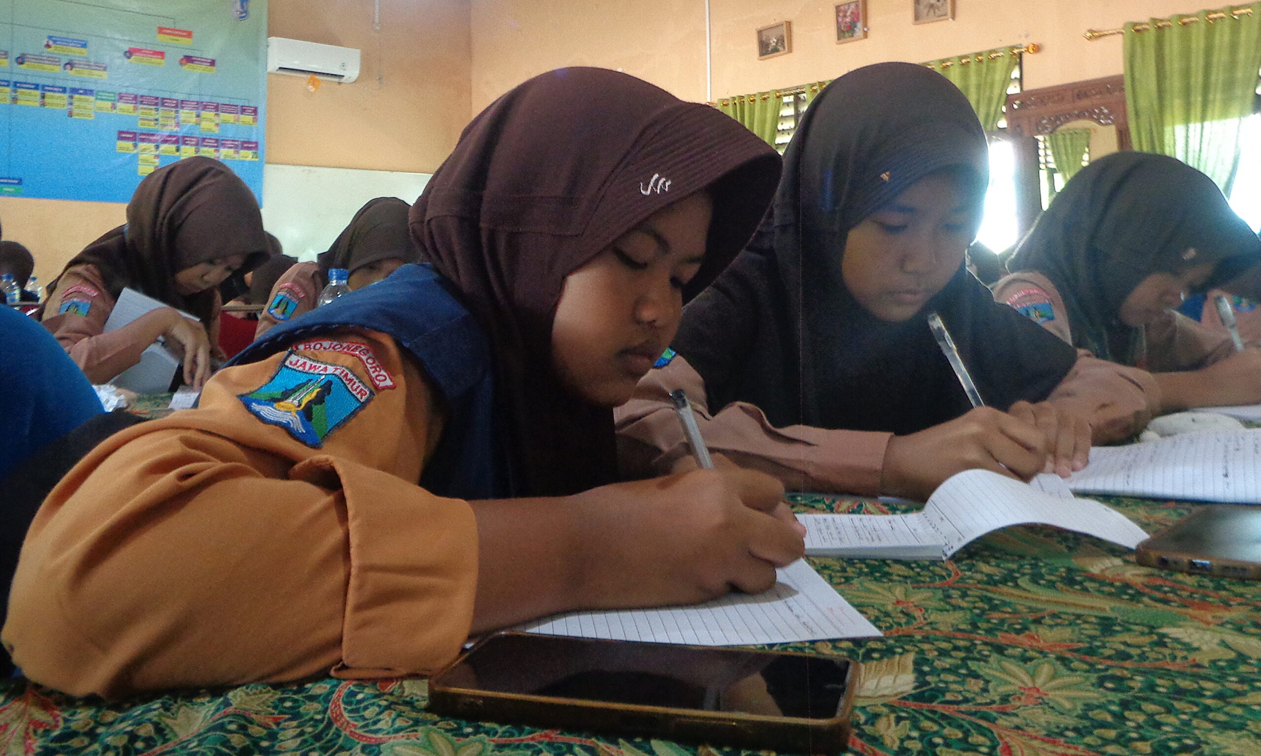 Para pelajar SMPN 1 Ngraho antusias menyimak tiga jenis materi itu. Dalam setiap sesi, selalu ada yang mengajukan pertanyaan. Interaktif.