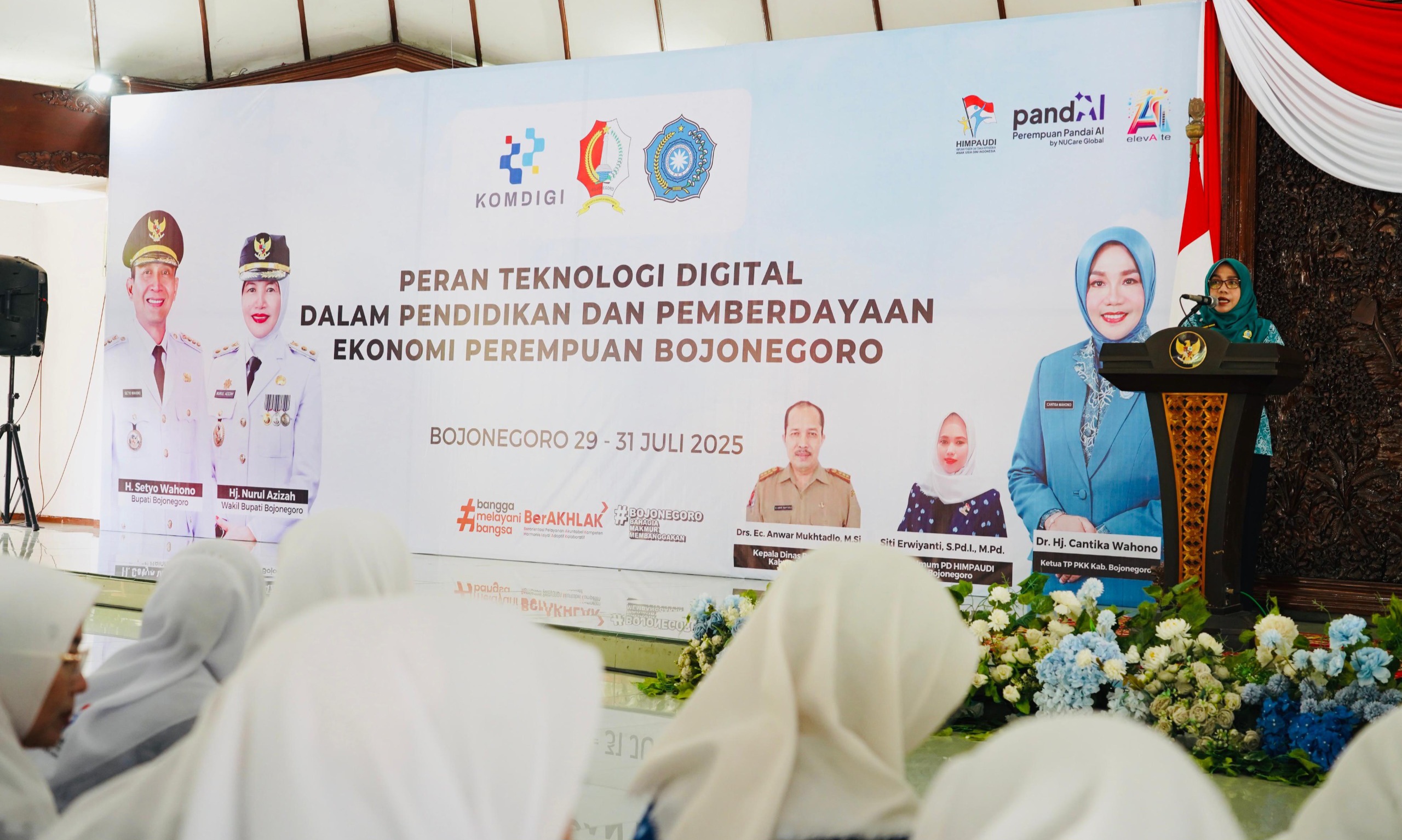 Para perempuan dari dua organisasi itu mengikuti seminar Peran Teknologi Digital dalam Pendidikan dan Pemberdayaan Ekonomi Perempuan Bojonegoro yang digelar Komdigi, Himpaudi, dan Pemkab Bojonegoro selama 29-31 Juli 2025.