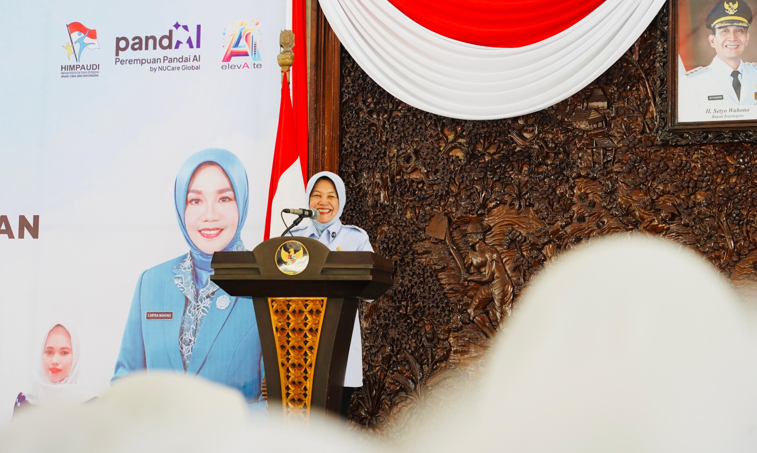 BERI APRESIASI: Cantika Wahono saat menghadiri seminar peran teknologi digital yang diikuti 3.000 perempuan dari Himpaudi Bojonegoro dan TP PKK Bojonegoro. (Foto: Istimewa)