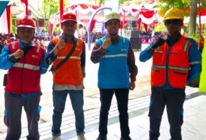 SIAGA: Personel PLN ULP Lamongan selalu siaga saat ada kegiatan strategis nasional. Keandalan listrik menjadi urgen dalam tugas dan pelayanan.
