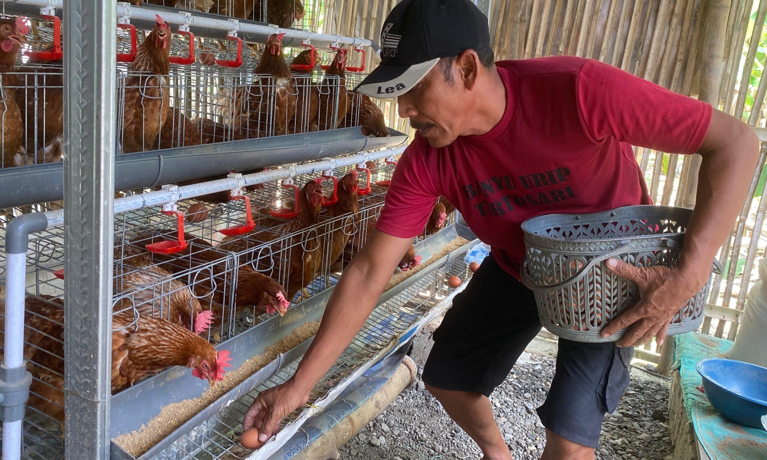Udin Sumarso, KPM Program Gayatri asal Desa Alasgung, Kecamatan Sugihwaras, Bojonegoro mengatakan, setiap hari dia memanen sekitar 50 butir telur. Jika ditimbang, beratnya sekitar 2,5 kg.