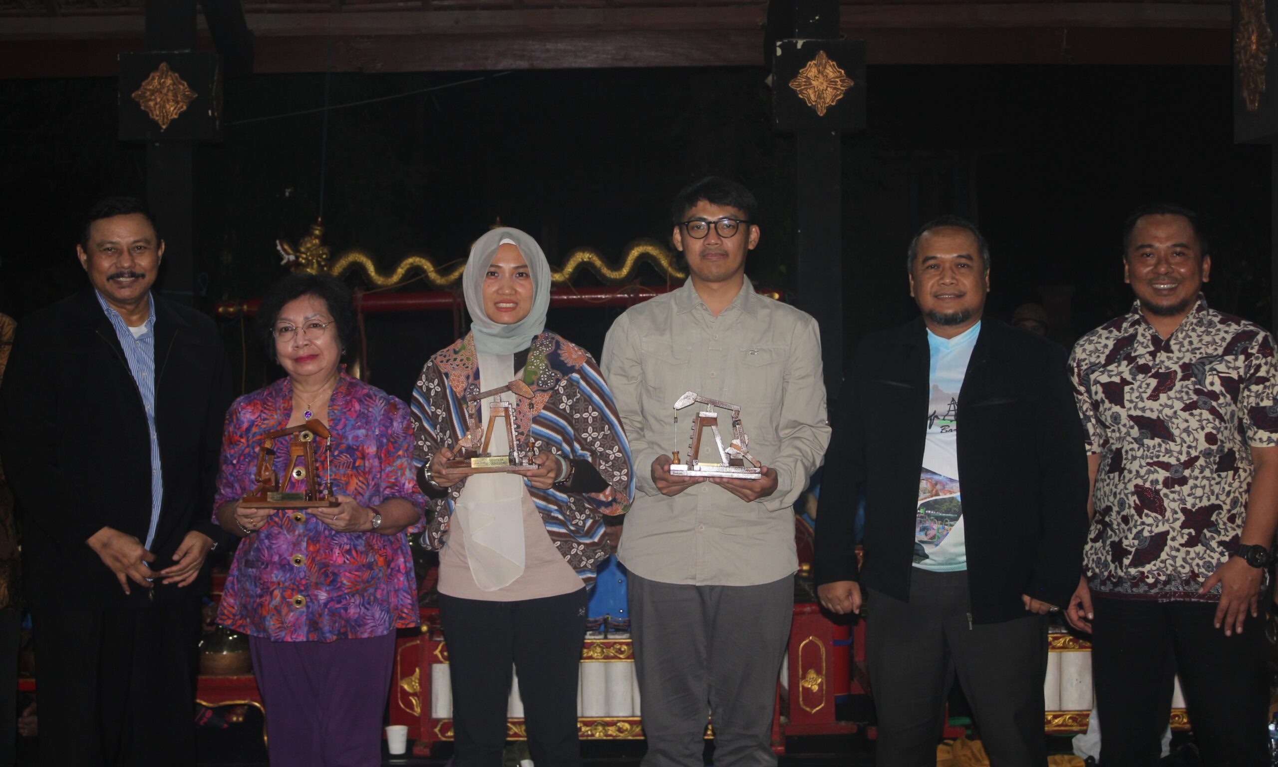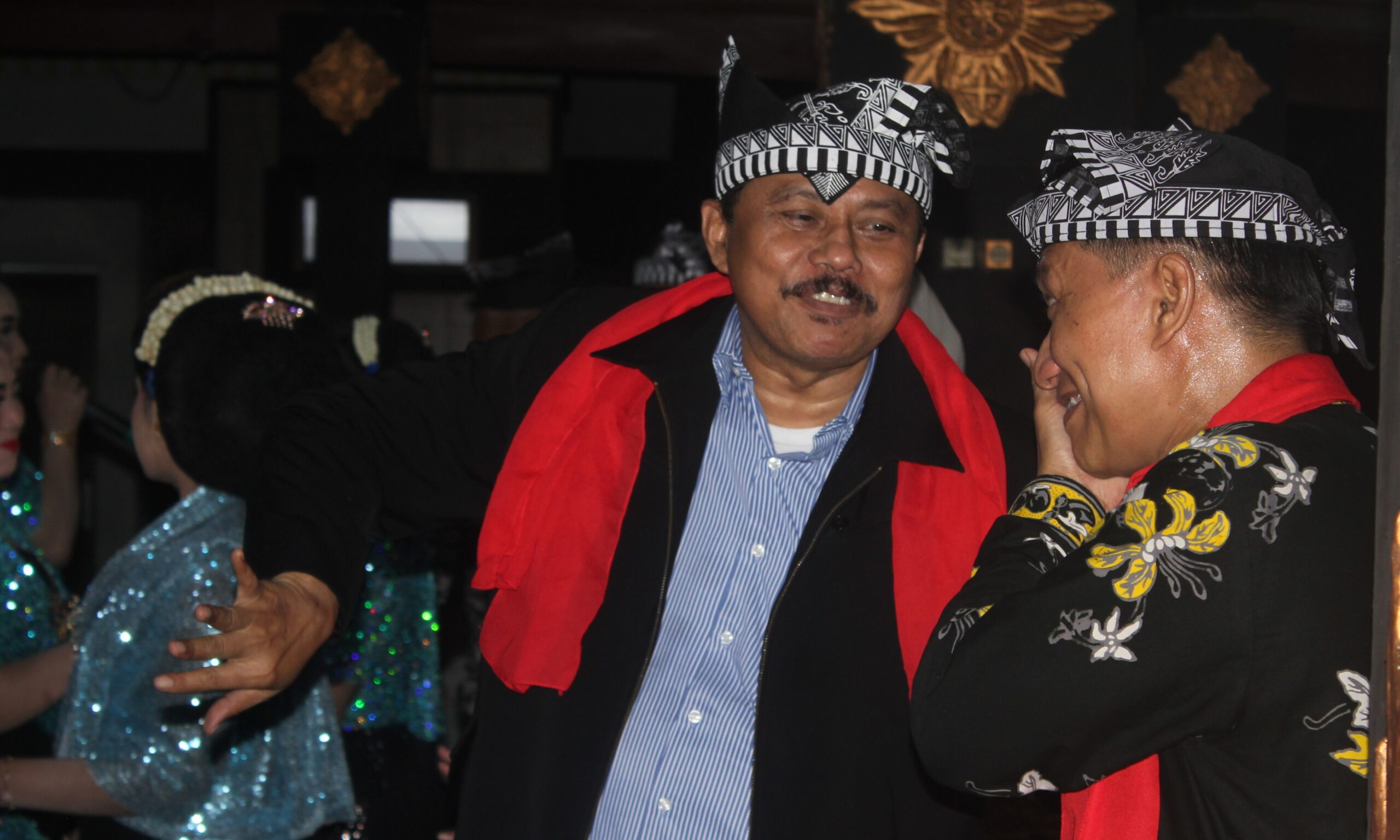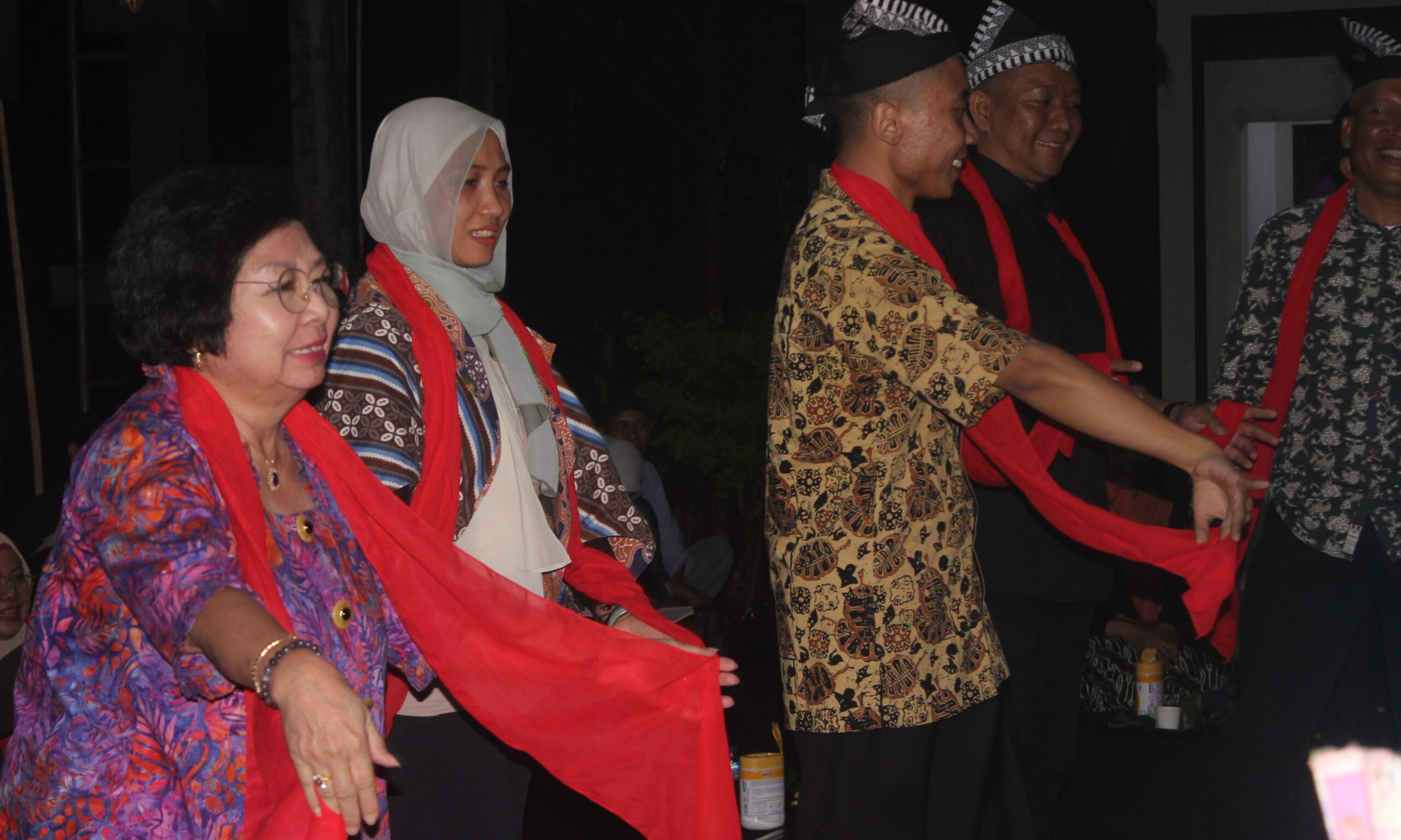Pada satu sesi, lima waranggono yang jadi ‘kembang panggung’ dalam pertunjukan karawitan di pendapa mengajak tim revalidasi dan para pejabat untuk menari.
