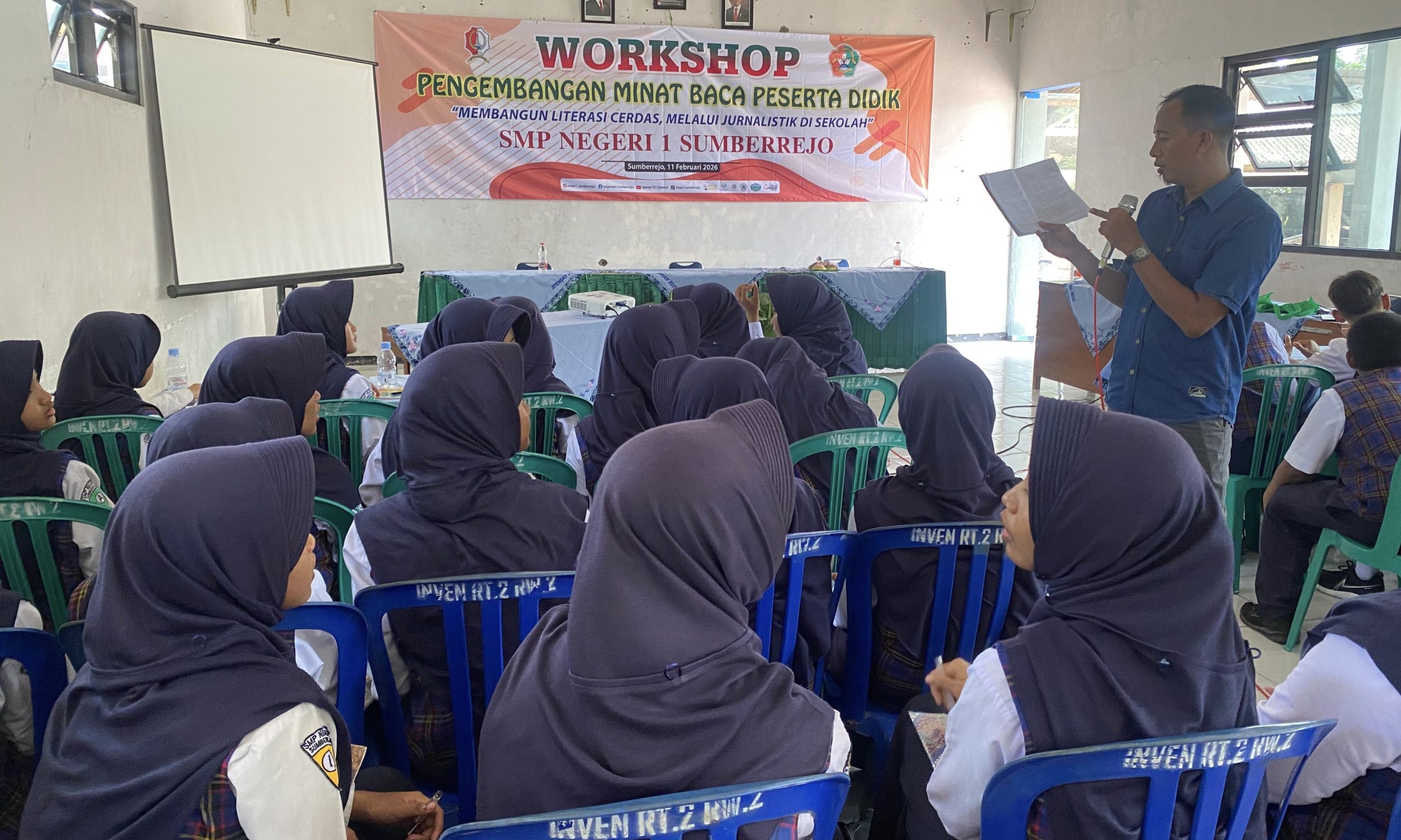 Khorij Zaenal Assrori dan M. Lukman Hakim menjadi pemateri dalam pelatihan di Ruang PBG SMPN 1 Sumberrejo pada Rabu (11/2/2026) pagi tersebut.