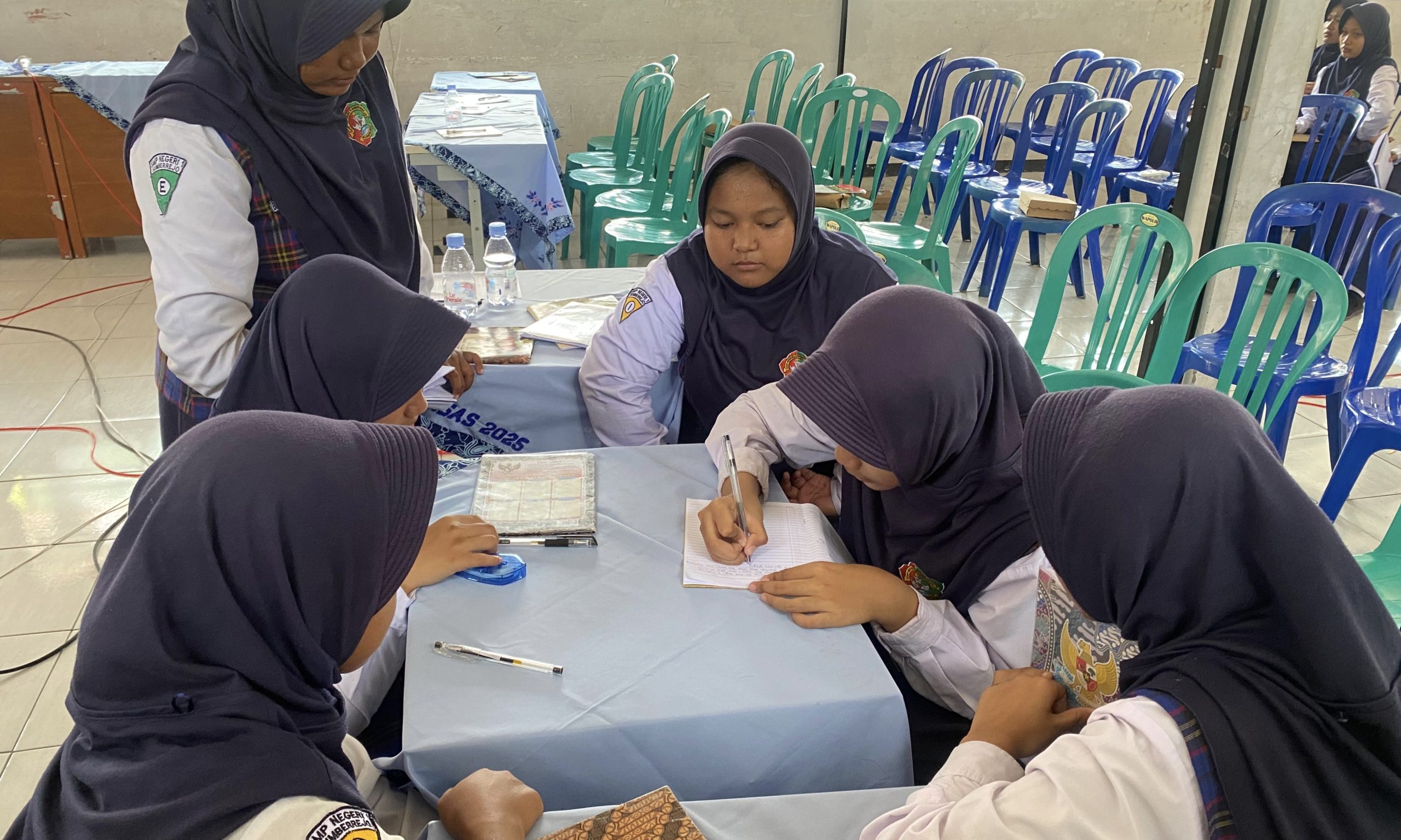 PRAKTIK: Para siswa SMPN 1 Sumberrejo saat belajar menulis berita dalam pelatihan jurnalistik, Rabu (11/2/2026) pagi. (Foto: M. Lukman Hakim/Bojonegoro Raya)