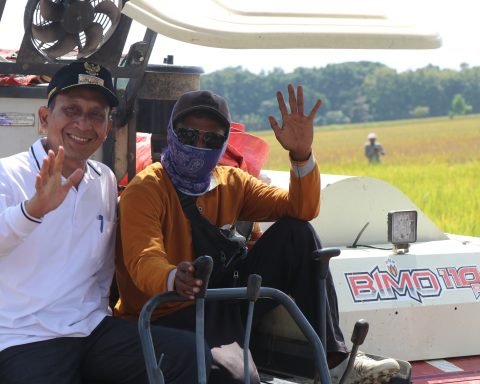 Setyo Wahono Ikuti Panen Raya Padi, Jadikan Bojonegoro Lumbung Pangan Nasional 07/04/2025 PANEN raya di persawahan seluas 400 ha itu tercatat menghasilkan 2.400 ton padi