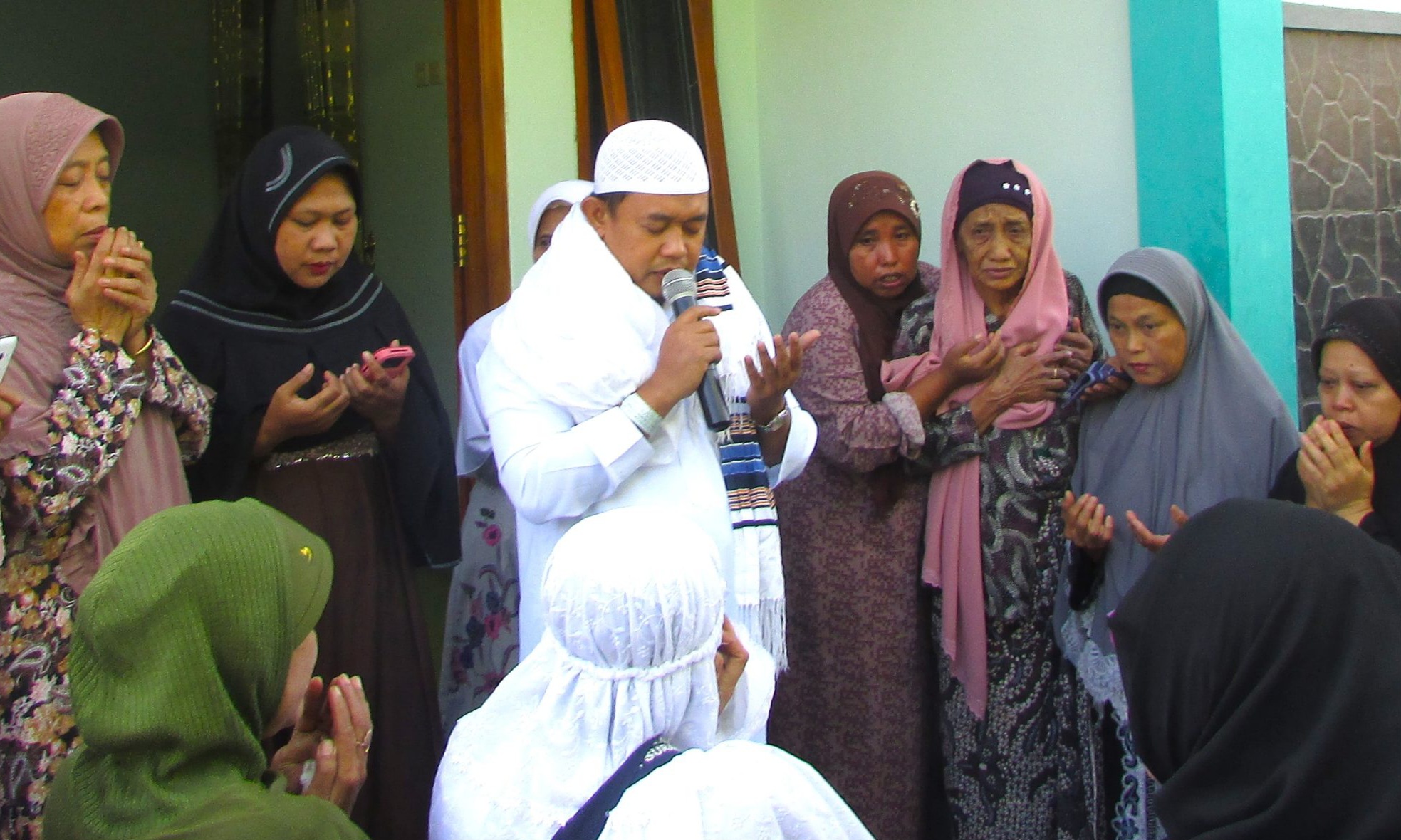 PAMIT: Jemaah haji asal Kecamatan Baureno, Bojonegoro saat berdoa bersama dengan para tetangga, sebelum berangkat ke Tanah Suci.