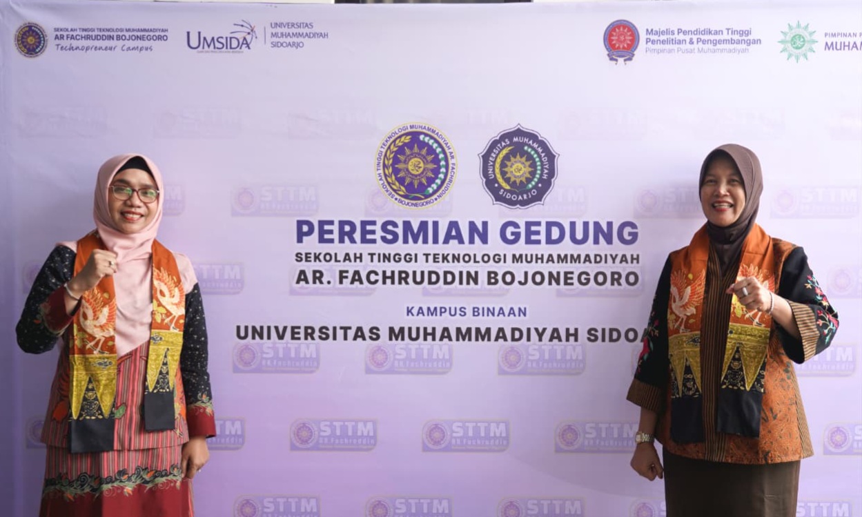 Wakil Bupati (Wabup) Bojonegoro Nurul Azizah bersama istri Bupati Bojonegoro Setyo Wahono yaitu Cantika Wahono, juga hadir dalam peresmian gedung baru milik kampus dirintis PD Muhammadiyah Bojonegoro sejak 2019 tersebut.