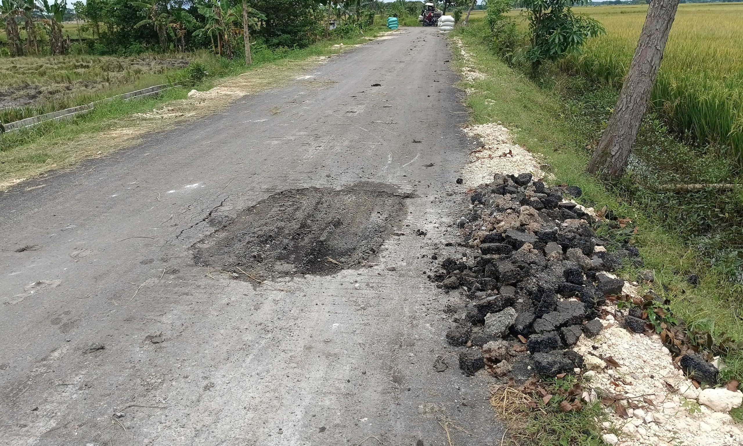 Belum genap sebulan, jalan diaspal Pemerintah Desa (Pemdes) Ngampal dengan BKKD senilai sekitar Rp 1,8 miliar itu sudah rusak lagi. Bahkan, rusak berat. Amburadul.