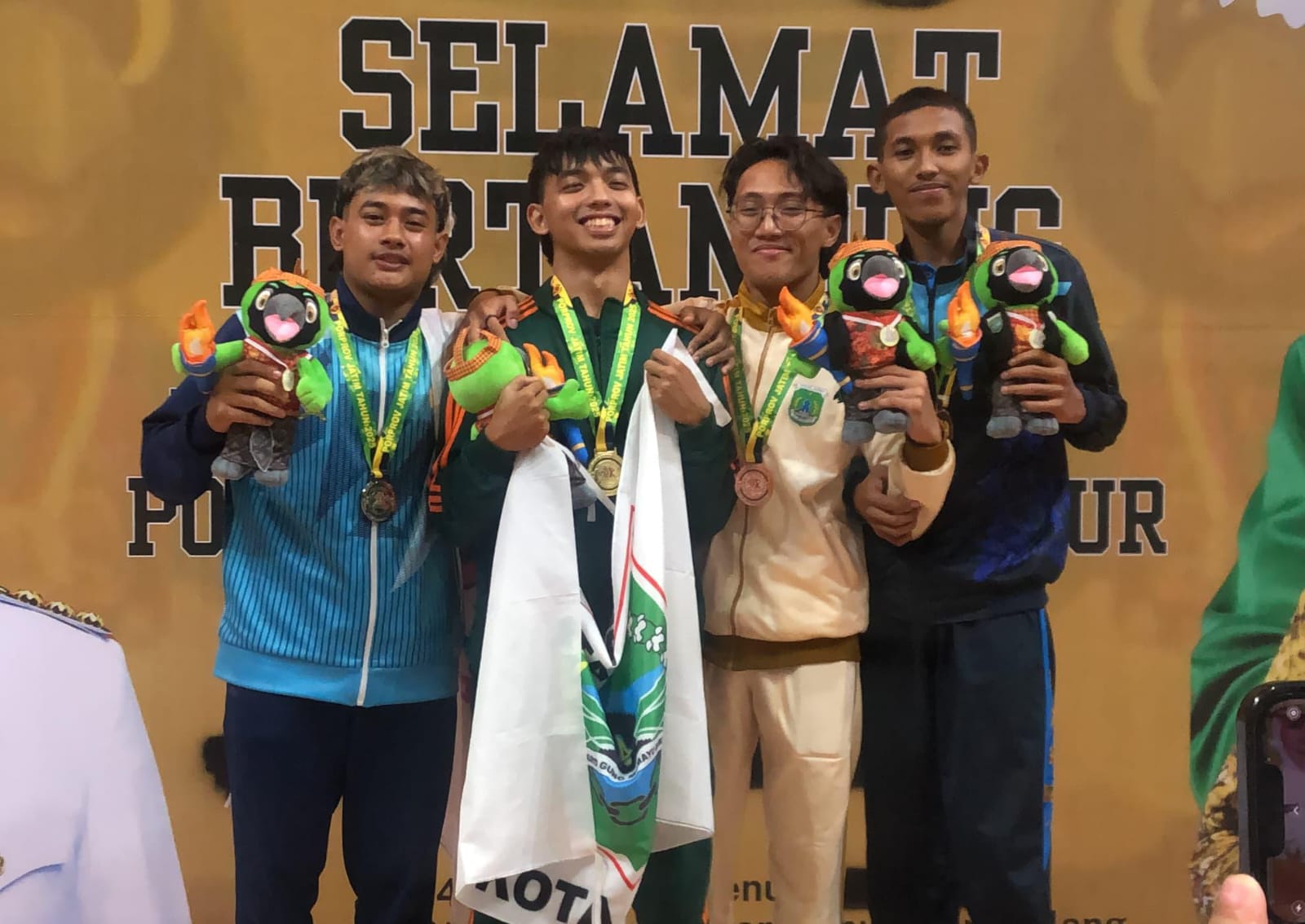 Selama di podium menerima medali, Yudi Galoh kerap kali tersenyum. Percaya diri. Torehan perak ini menjadi bukti, bahwa dia bisa berprestasi. Terlebih cabor yang belum lama berdiri ini bisa menyumbang medali untuk kontingen Bojonegoro.